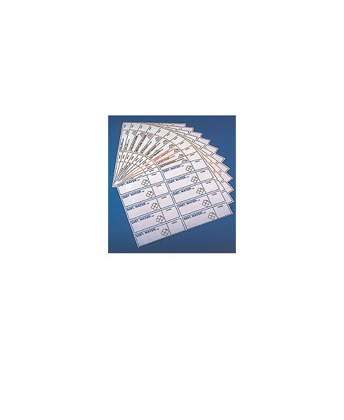 Etichette trasparenti e fustellate per spruzzette, bottiglie in plastica e vetro per reagentario, in accordo con NFPA (National Fire Protection Agency).