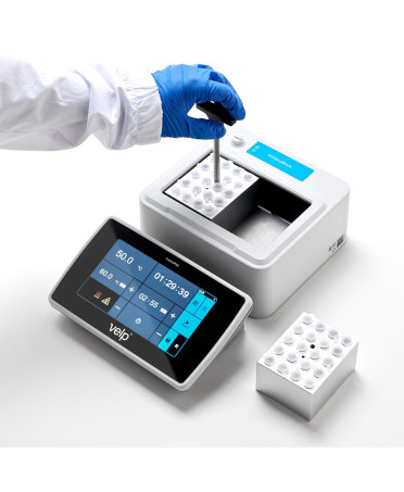Il blocco termostatico Velp offre la massima versatilità grazie a un’ampia gamma di blocchi in alluminio intercambiabili e facili da pulire, progettati per accogliere fiale, tubi per microcentrifuga, tubi PCR, strisce PCR, tubi Greiner, micropiastre e cuvette.